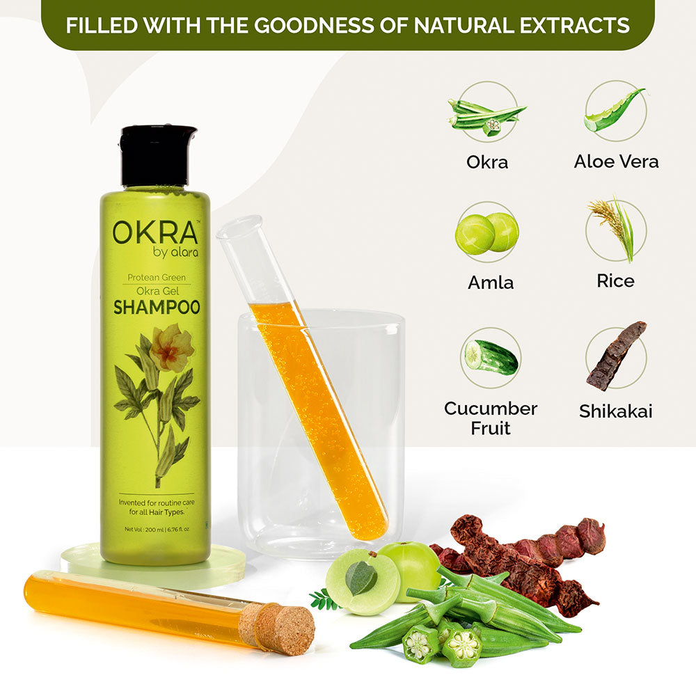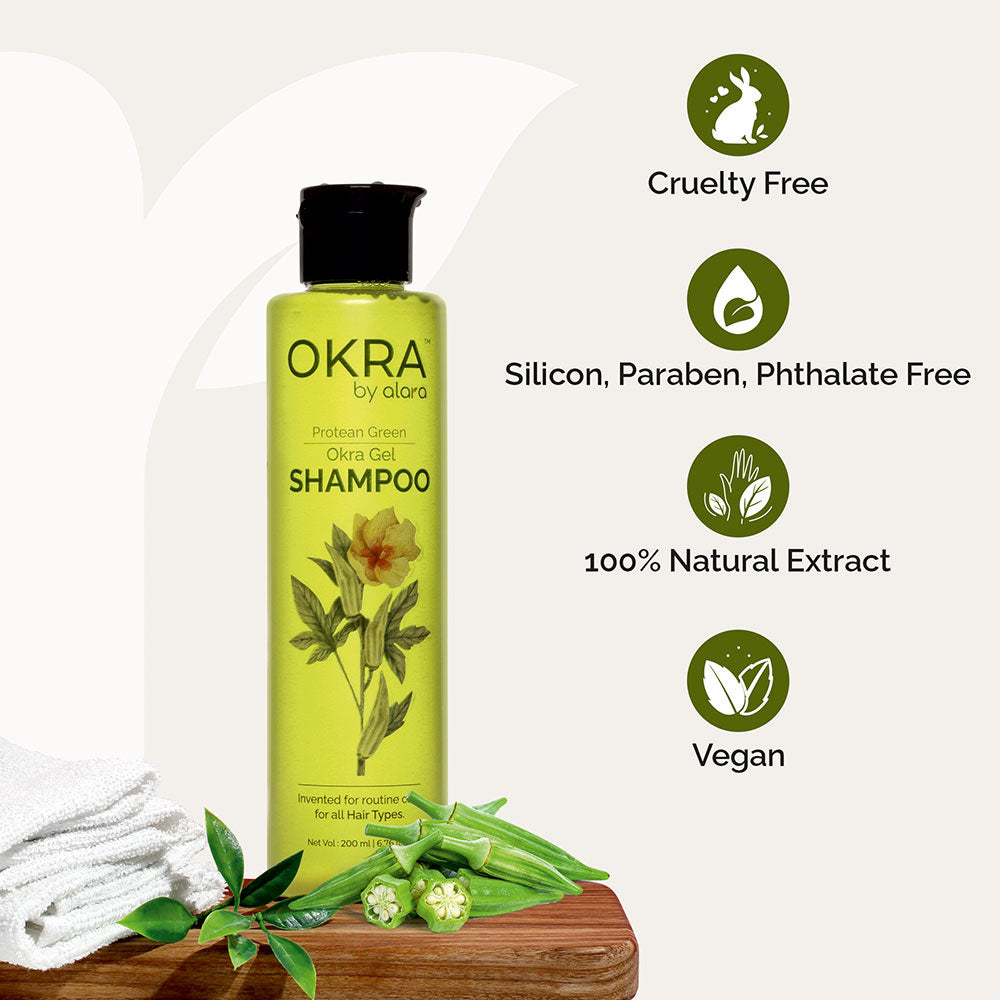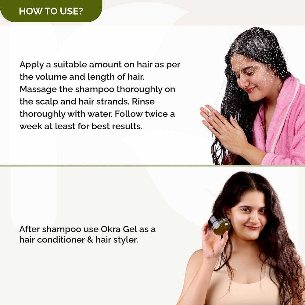 We achieve this by using a very humble natural ingredient called “Okra”, “ladyfinger ” or “Bhindi”. The natural mucilage found in Okra can work wonders for your hair when combined with science. So the breakthrough product that has been formulated after years of research on Okra and its benefits is: “Okra Gel Shampoo”.